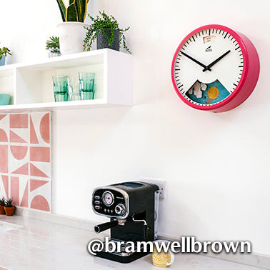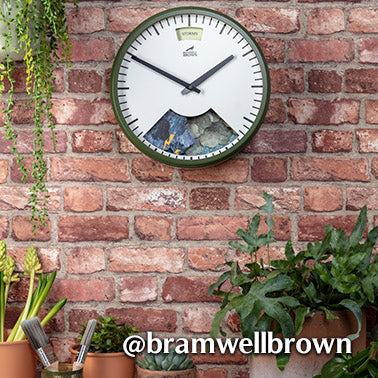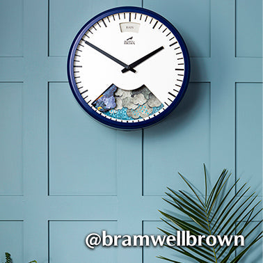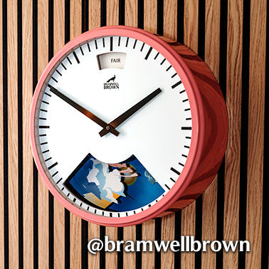 Just like the rest of the Bramwell Brown range, your clock will be made from high quality parts: German-made Quartz mechanism keeps the clock hands on time. Steel clock frame is hand spun, welded and finished in England. Printed clock face sits behind the anodised metal minute and hour hands. Weather artwork is printed on artboard. The clock window is shatterproof Lumex. -