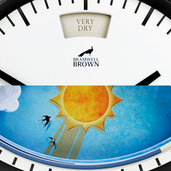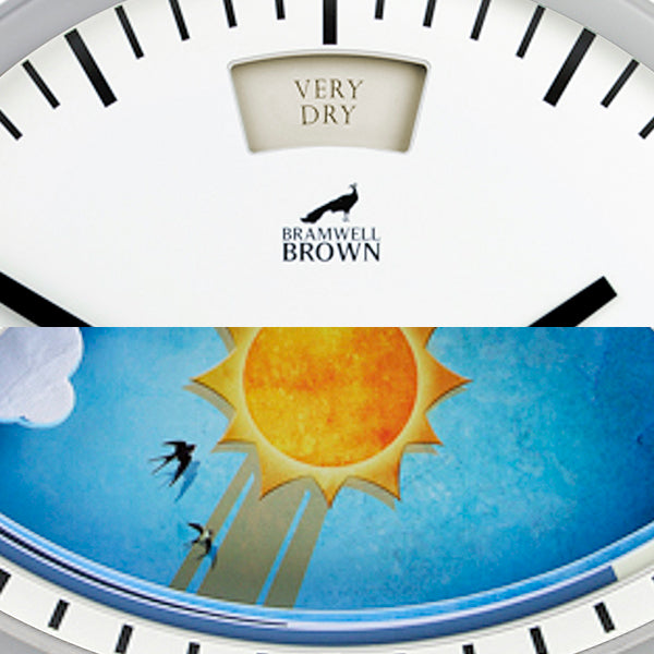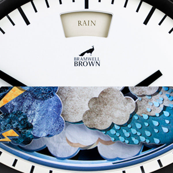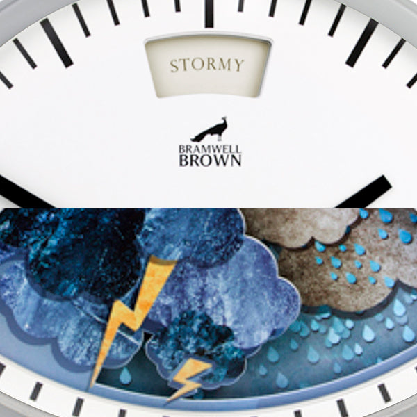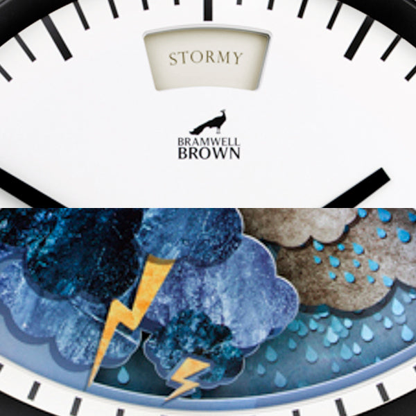 The illustrated scene changes with the air pressure, just like the barometers of old: ‘Very Dry’, ‘Fair’, ‘Change’, ‘Rain’, and ‘Stormy’. - Easy to hang (indoors!)