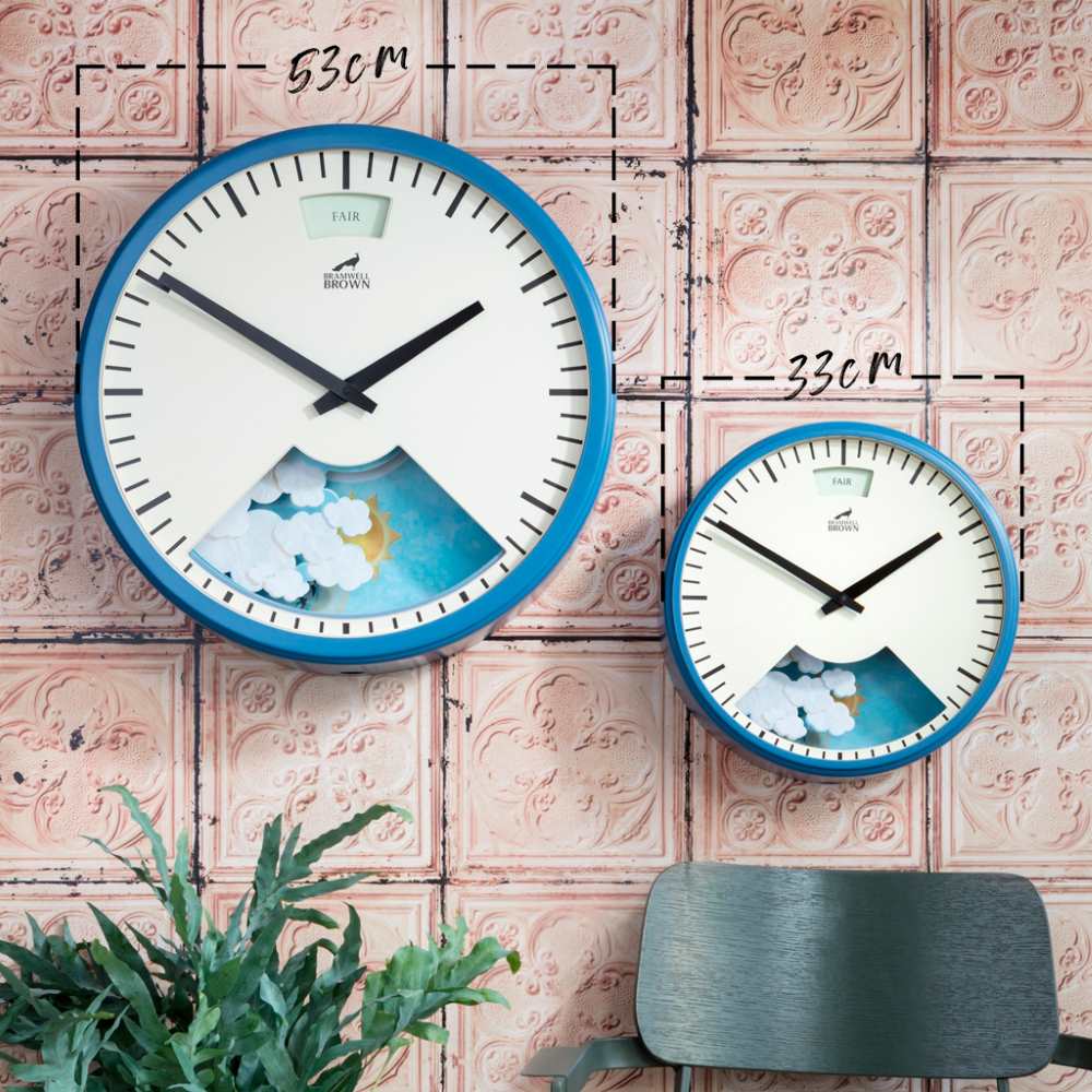 - Size is everything – with a 53cm / 21in diameter, the face is 20cm / 8in wider than our much-loved regular-sized Weather Clock. A hugely impactful work of art for your wall.