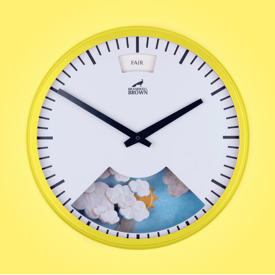 - Already own a Bramwell Brown clock? – As our clocks are made to have long lives, we can accept 'trade-ins' of older regular-sized Weather Clocks in exchange for a large discount on a Giant Weather Clock. Your current clock will be refurbished for a new life in another happy home. See here for more information.