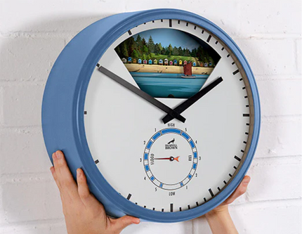 A weather forecast in a clock – watch the beautiful illustrations move with a captivating burble, as the barometer inside detects air pressure changes.