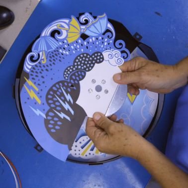 - "Childlike wonder" – Artist, Emily Hogarth, describes her weather scenery designs as a "magical world of paper and shadow dancing within, as a result of the cut out elements in the design. I tried to use this to our advantage to add to it to emphasise the movement and sense of childlike wonder."